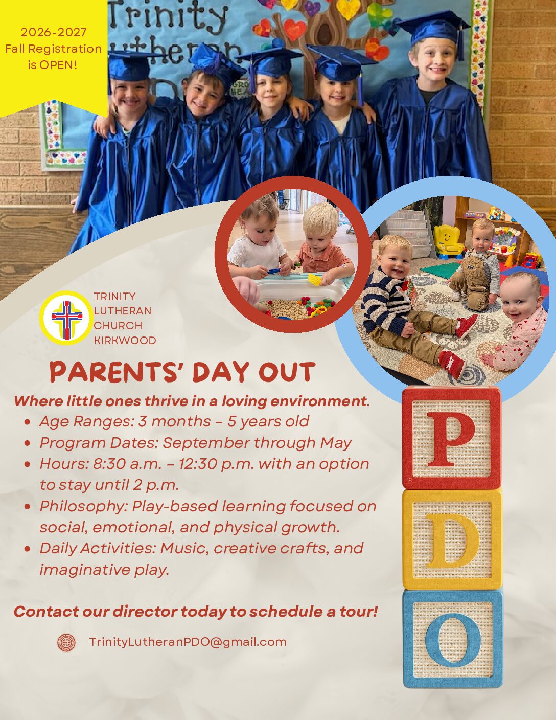 If you would like more information or would like to schedule a tour please email the director at TrinityLutheranPDO@gmail.com